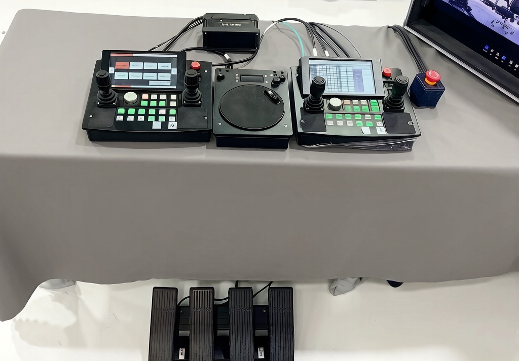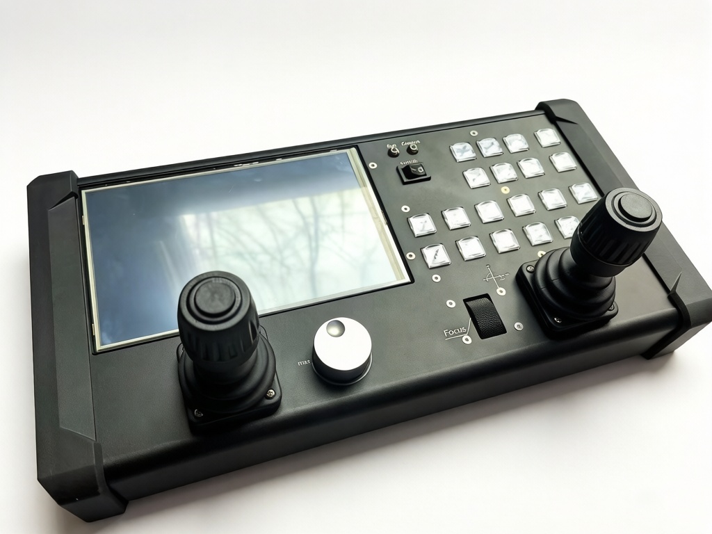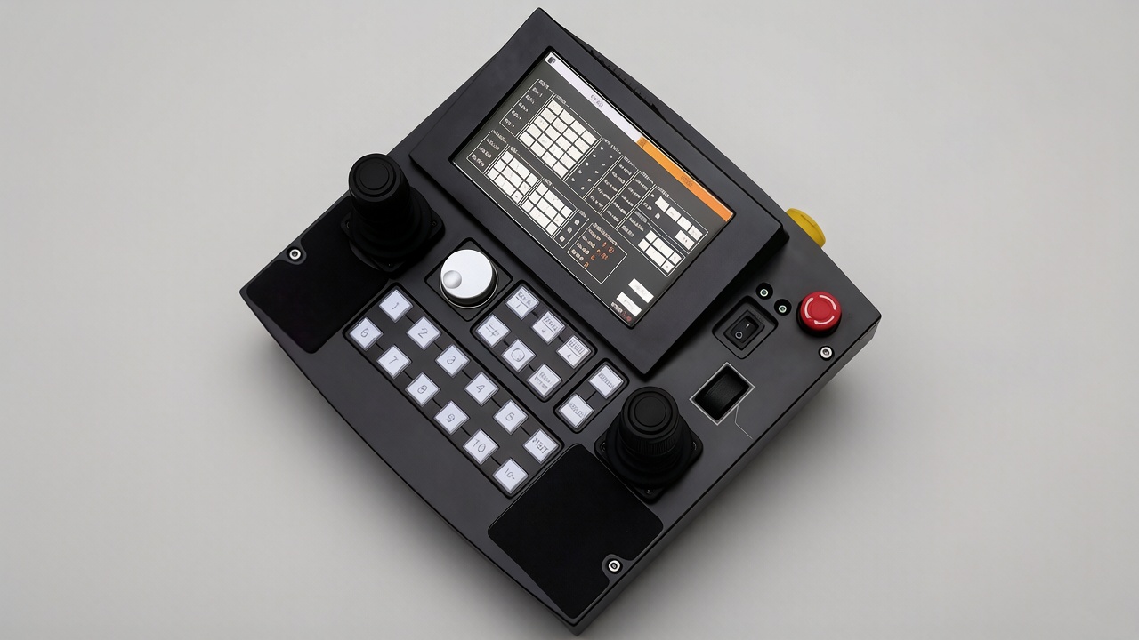 The camera robot remote control panel features a built-in operating system, with a touch screen and physical buttons for operation. It is a human-computer interaction tool for remote control of various multi-axis motion camera equipment.